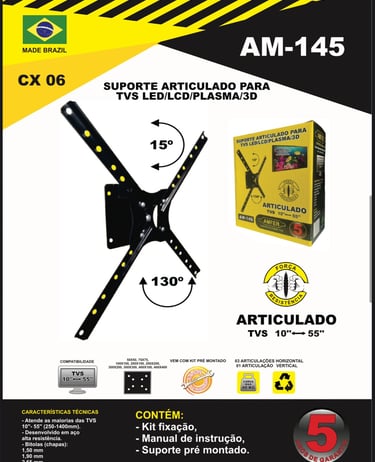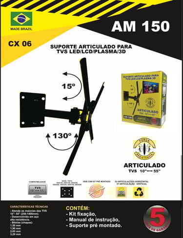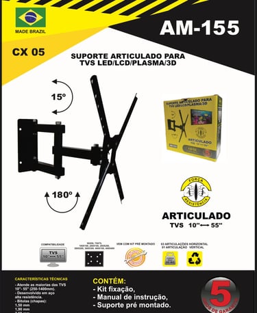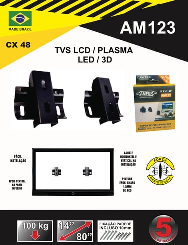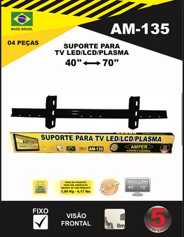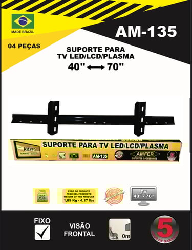 Com foco em excelência e inovação, todos os nossos suportes contam com 5 anos de garantia, assegurando tranquilidade e demonstrando a credibilidade da AMFER no mercado. Nosso objetivo é oferecer sempre o que há de melhor, unindo tecnologia, design funcional e robustez para atender às necessidades dos consumidores mais exigentes.